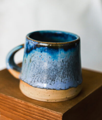 This handmade blue ceramic coffee mug captures both elegance and strength in its form. Crafted in small batches from durable stoneware, it holds 170 ml, the perfect size for your morning espresso, afternoon tea, or evening coffee ritual. Each mug is carefully glazed with shades of blue that flow like brushstrokes, creating a unique piece where no two are ever alike.